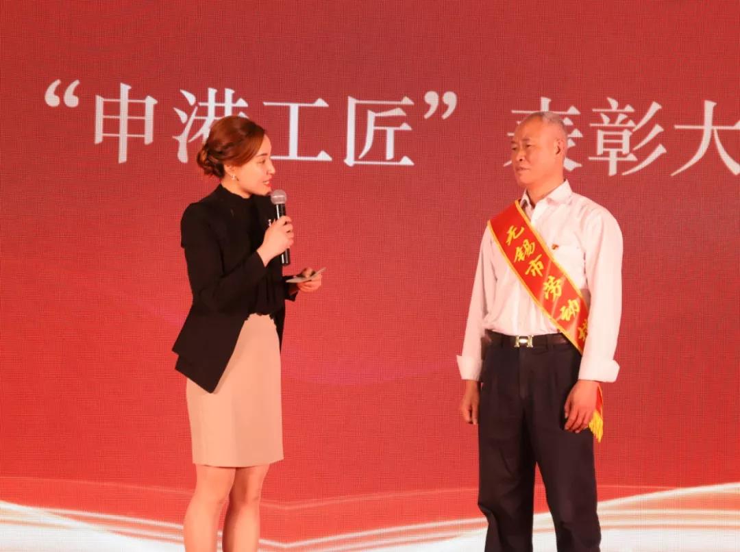 大會隆重表彰了第二屆“申港工匠”,江陰市總工會副主席張紅霞、曾昭平為“申港工匠”獲得者頒獎。